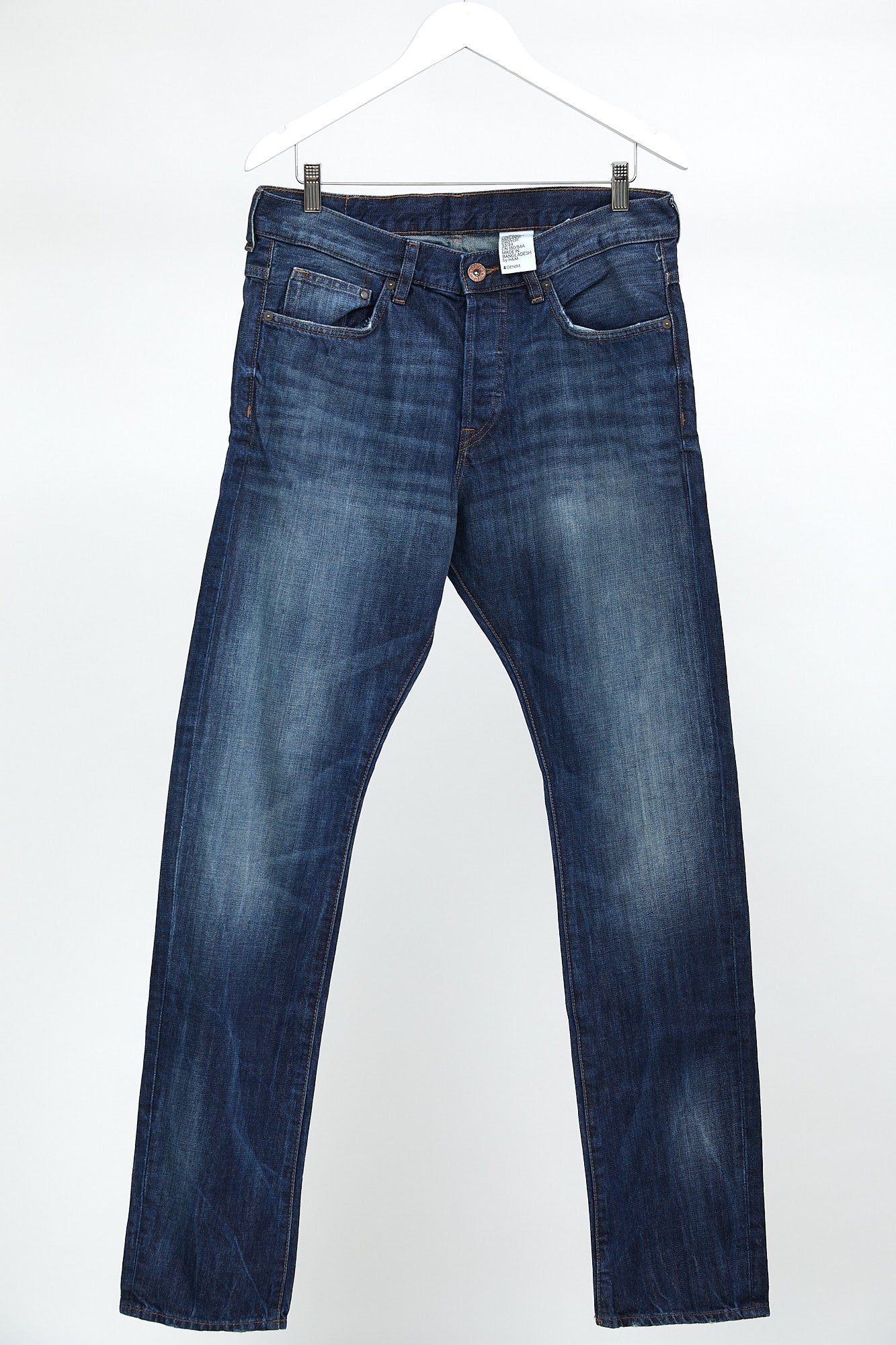 H&M Dark Blue Denim Tapered Leg Jean: W33 L34