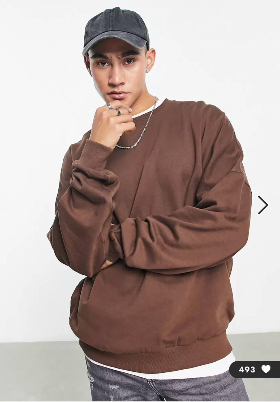 Mens ASOS Design Oversized Brown Sweatshirt size Medium to fit 38-40" chest