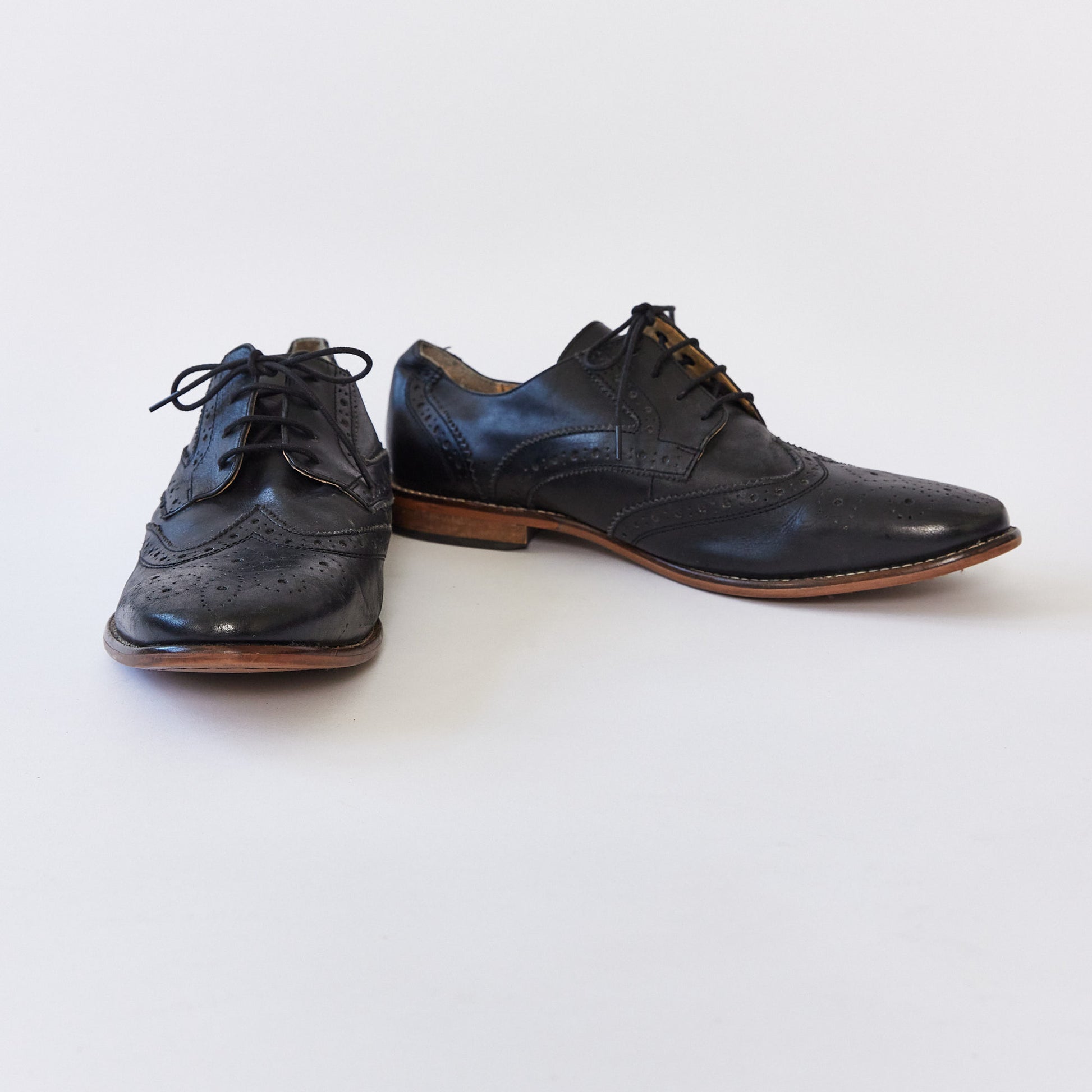 Mens classic black leather brogue style lace up shoe with brown leather sole size 11