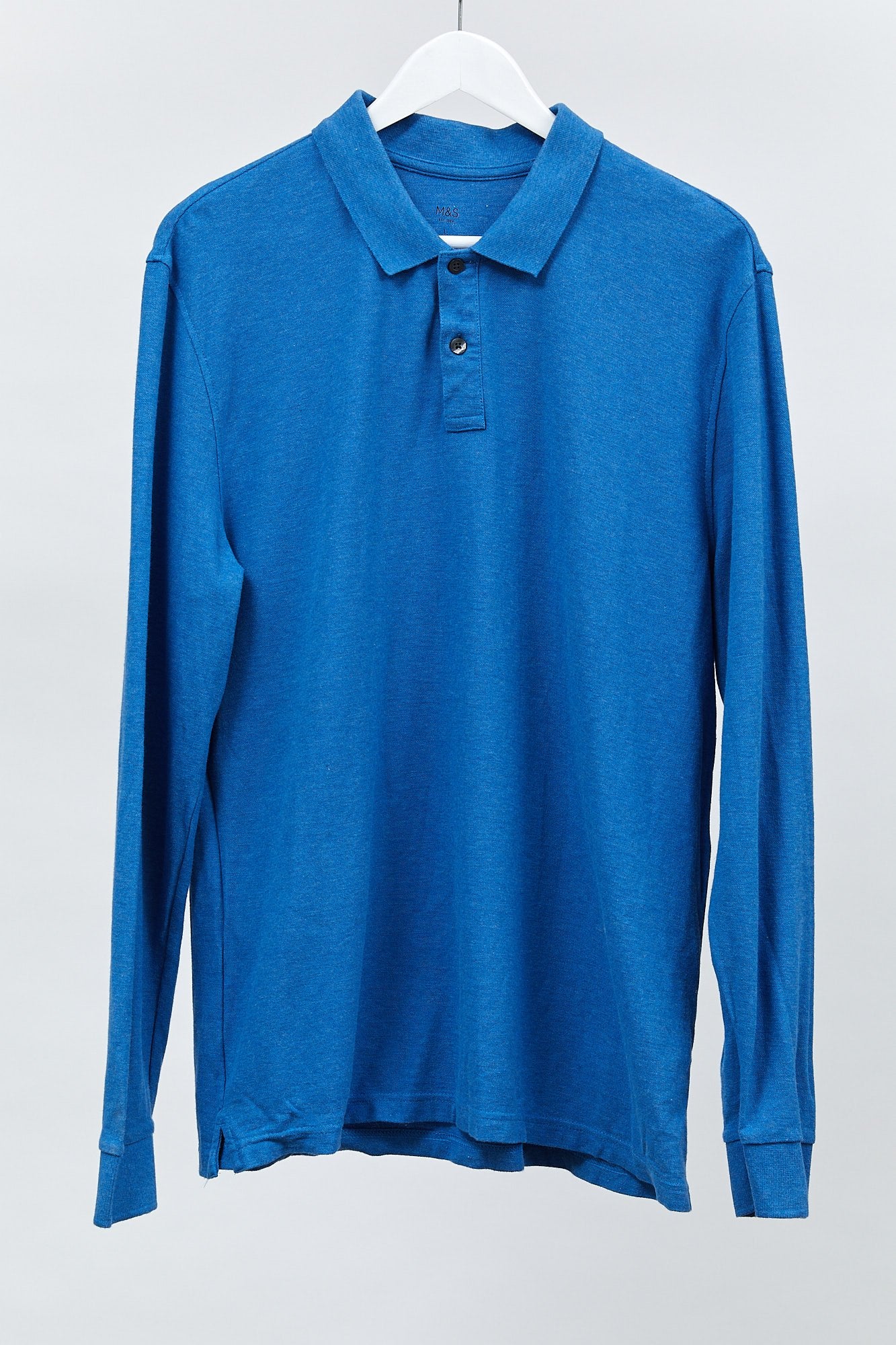 Mens Blue Long Sleeved M&S Polo Shirt: Size Large to fit 41-43" Chest