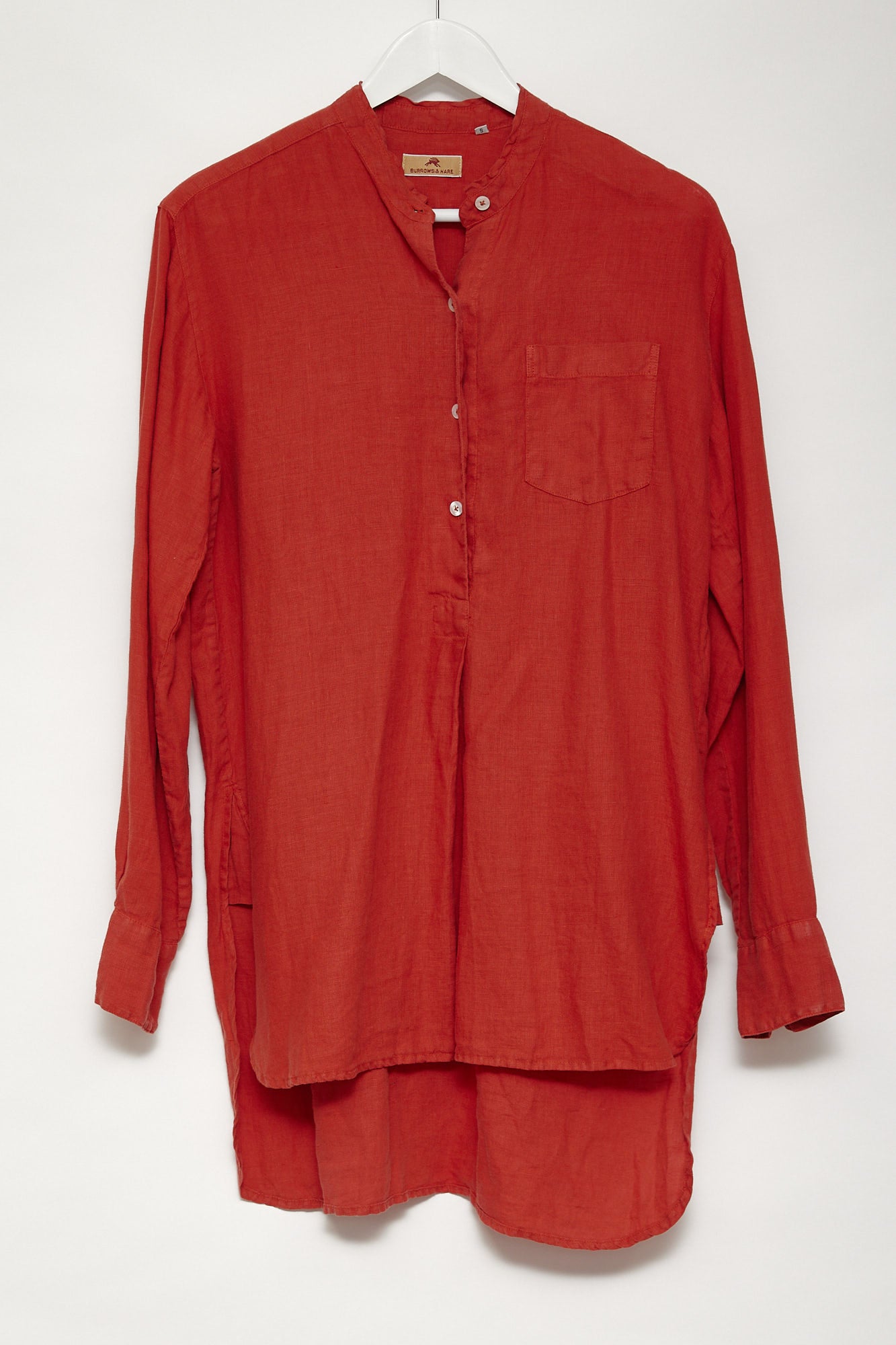 Mens Burrows & Hare red linen partial button up shirt size small to fit 36" chest