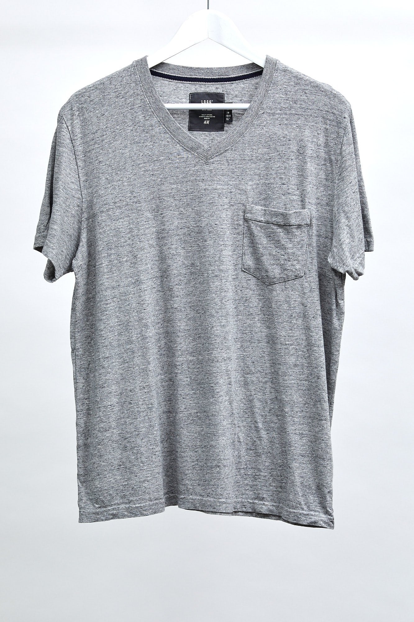 Mens Grey V-Neck H&M T-Shirt with front breast pocket: Size Medium to fit 38-40" Chest