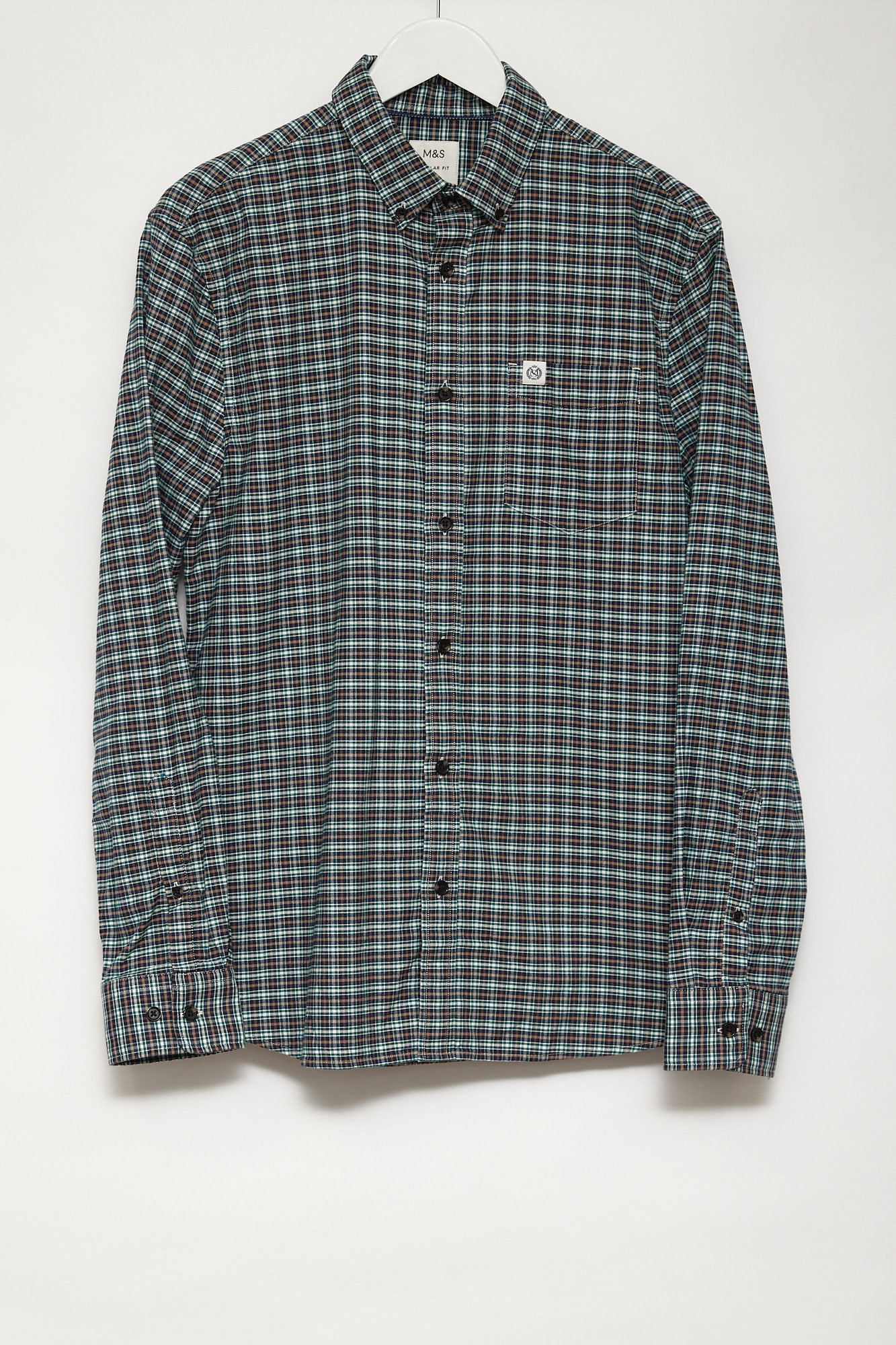 Mens M&S Green & Brown checked oxford shirt size medium to fit 38" - 40" chest