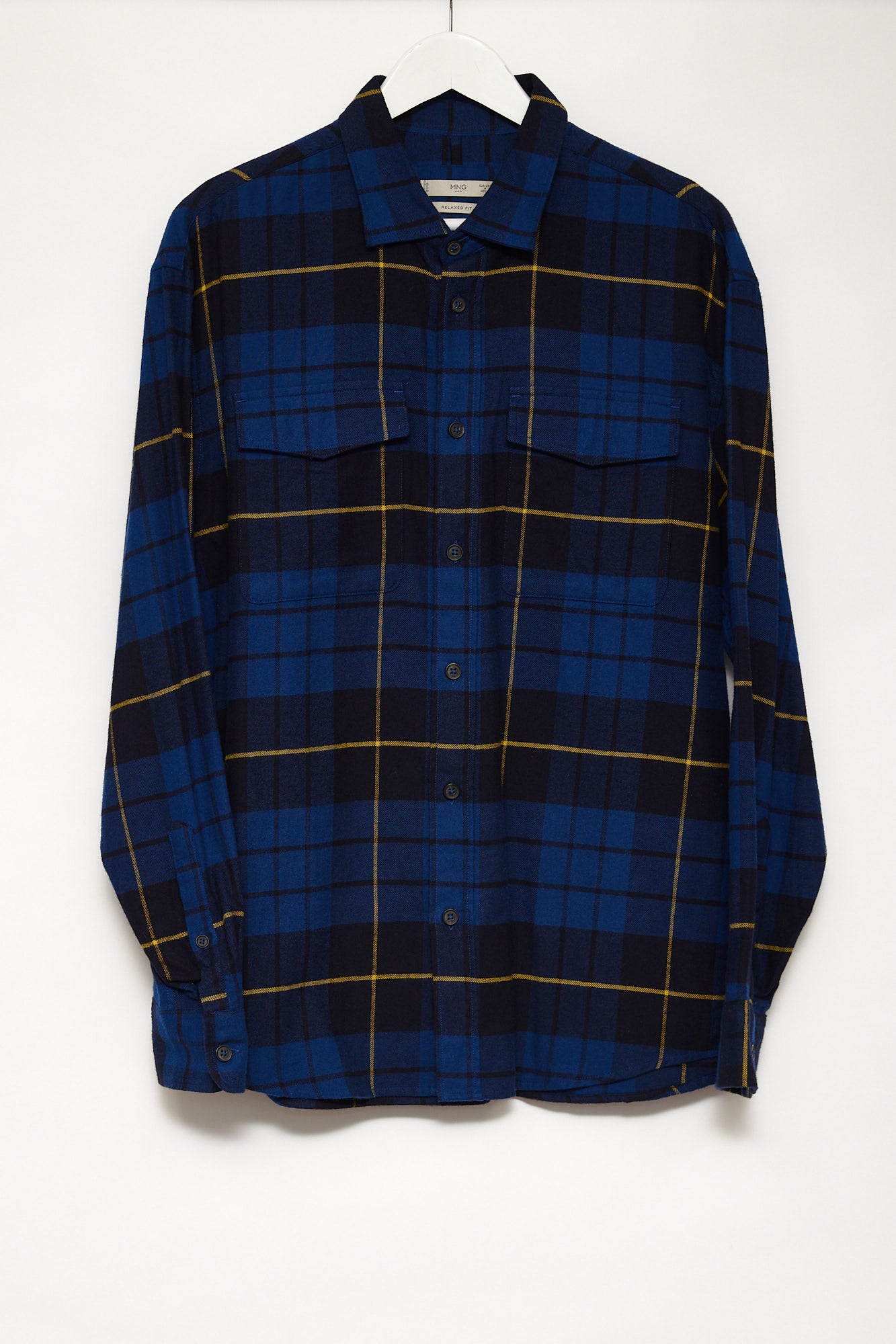Mens Mango Blue Yellow & Black checked flannel shirt with front flap pockets size medium to fit 38"-40" chest