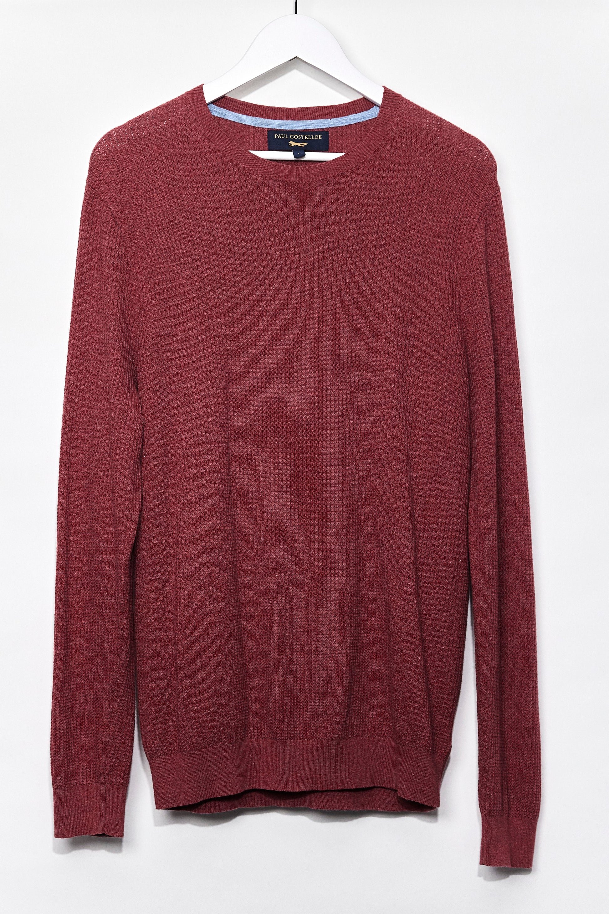 Mens Red Paul Costello Textured Knitted Jumper size Large to fit 40-42" Chest