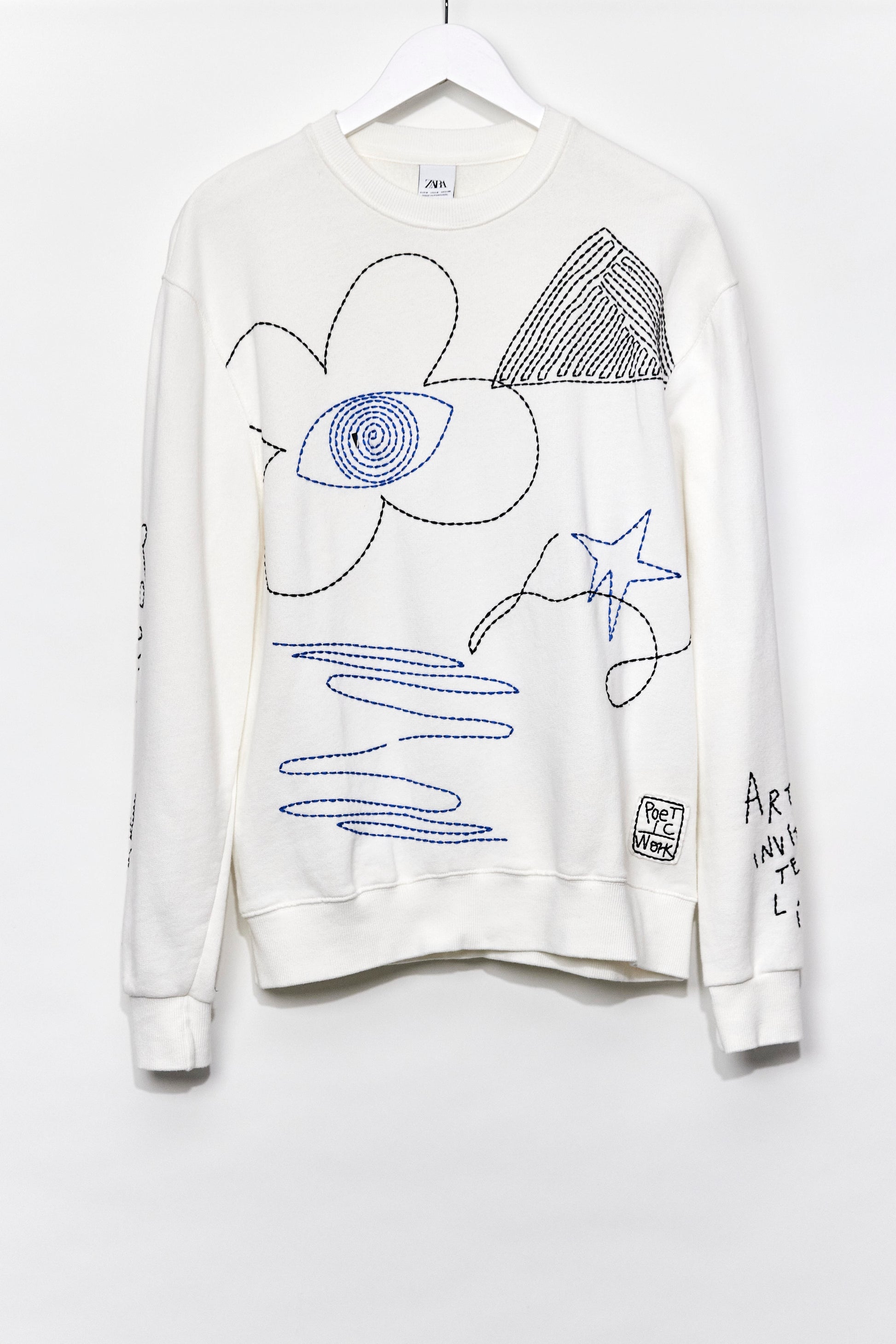 Mens Zara Graphic White Sweatshirt size Small to fit 36" chest