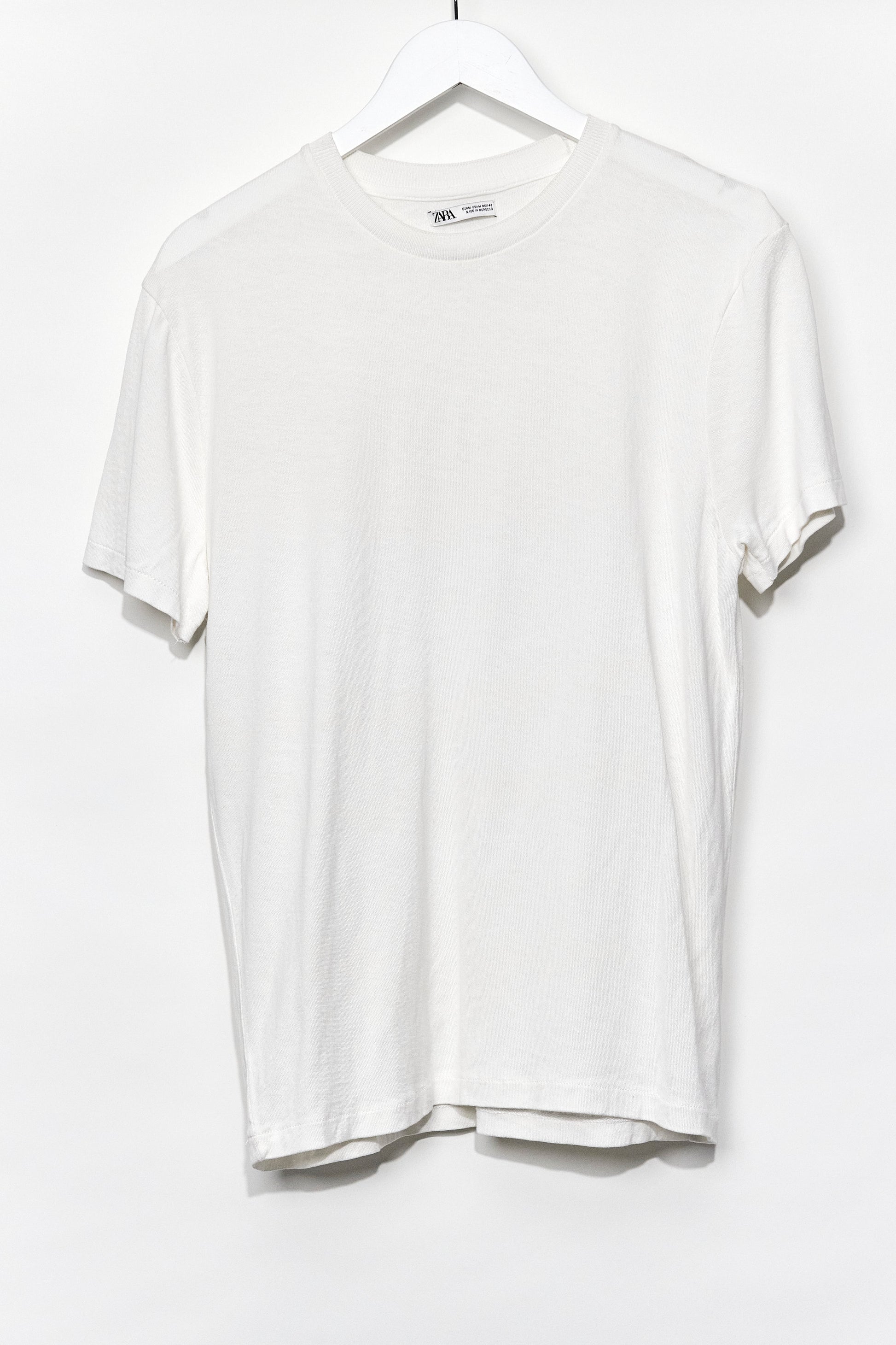 Mens Zara White Knitted Crew neck T-shirt size Medium to fit 38" chest