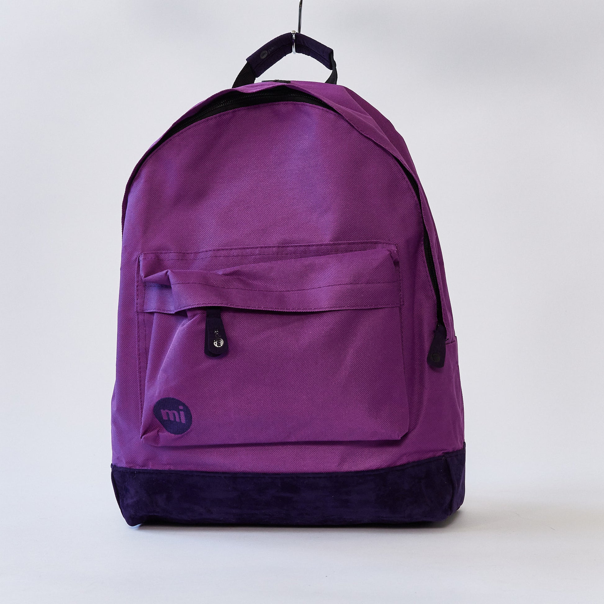 Purple Mi Pac Rucksack with contrasting dark purple base, front zip pocket and adjustable shoulder straps