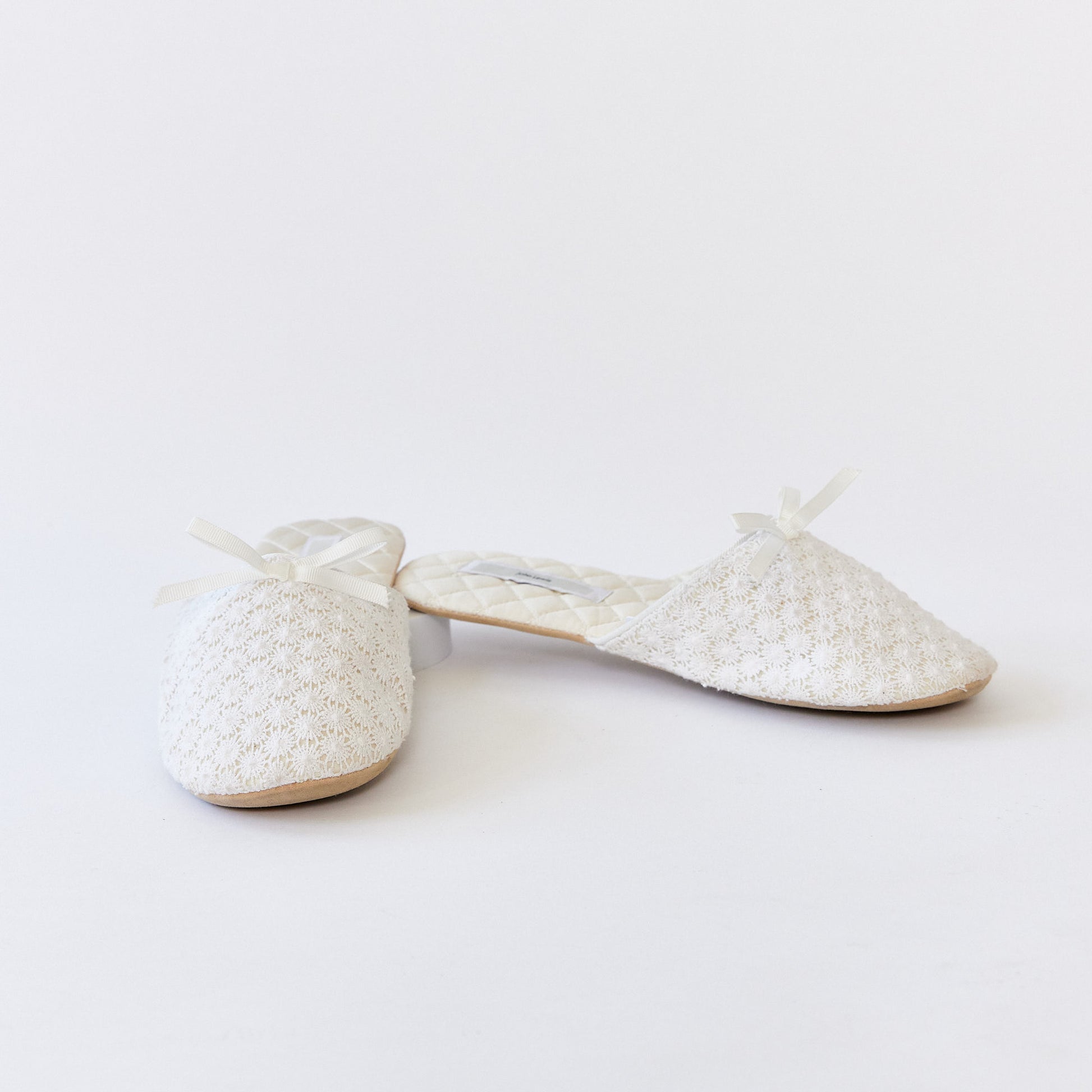 White dainty crochet mule style slipper with bows size 5
