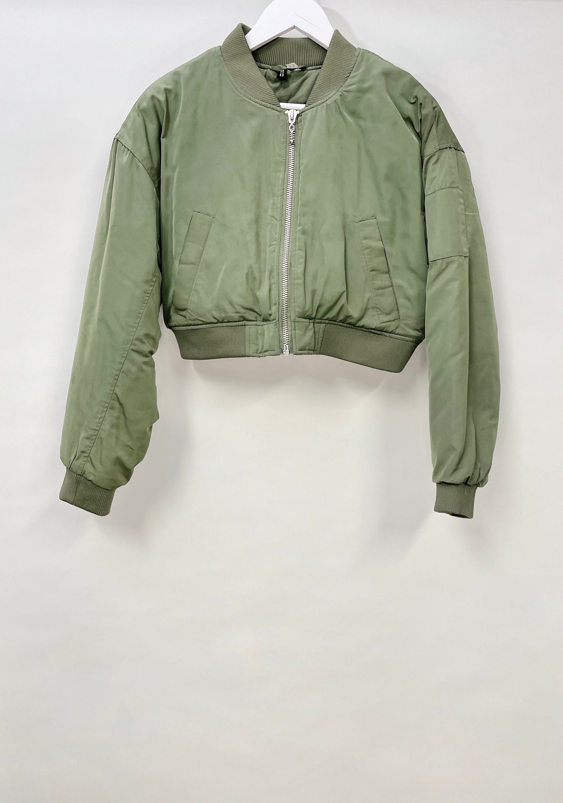 Womans H&M Green Cropped Bomber Jacket Size 6 or Extra Small
