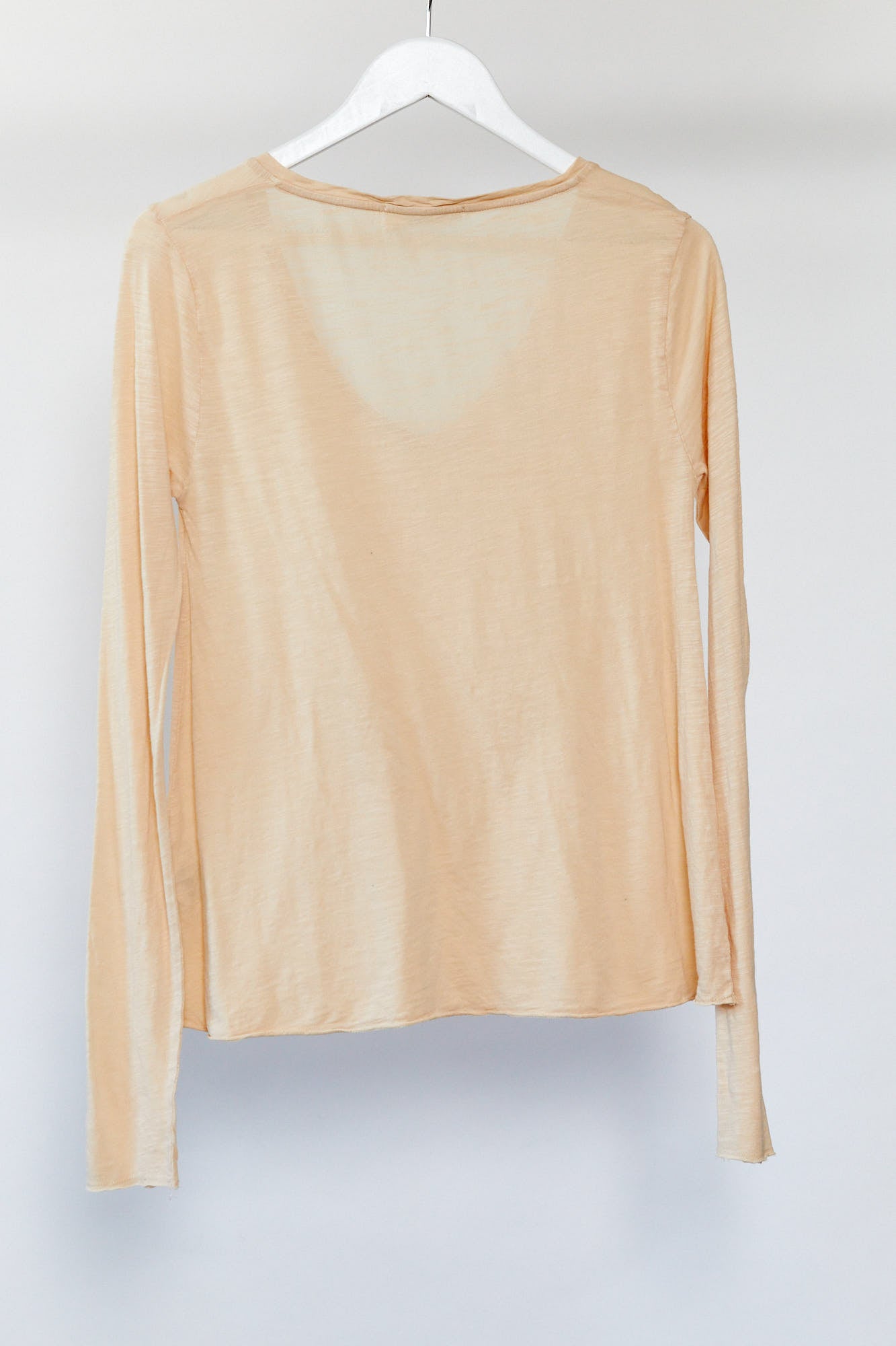 Womens American Vintage beige low neck long sleeve T-shirt: size small loose fit