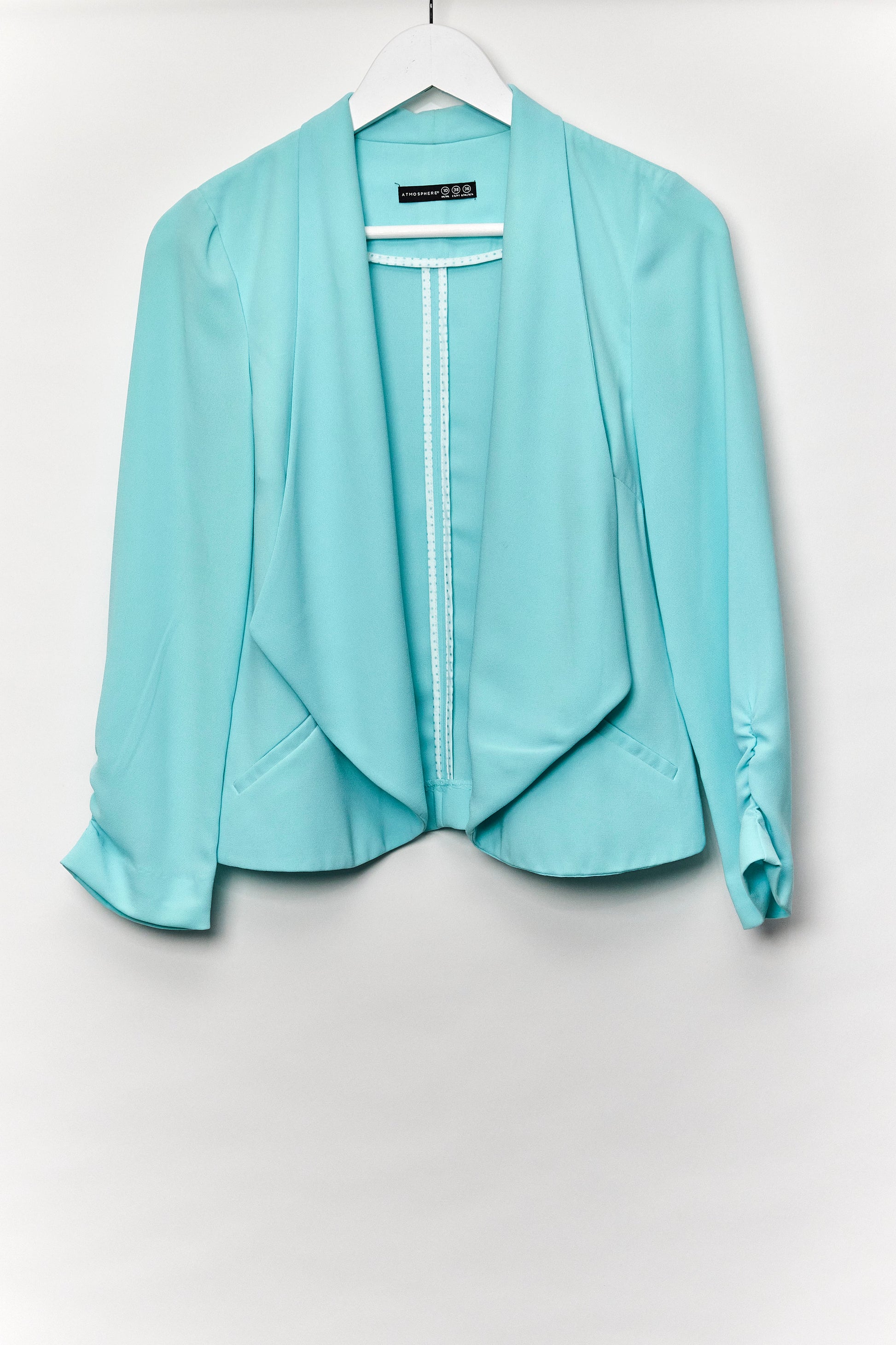 Womens Atmosphere Turquoise draped collar blazer with gathered sleeve detail size 10