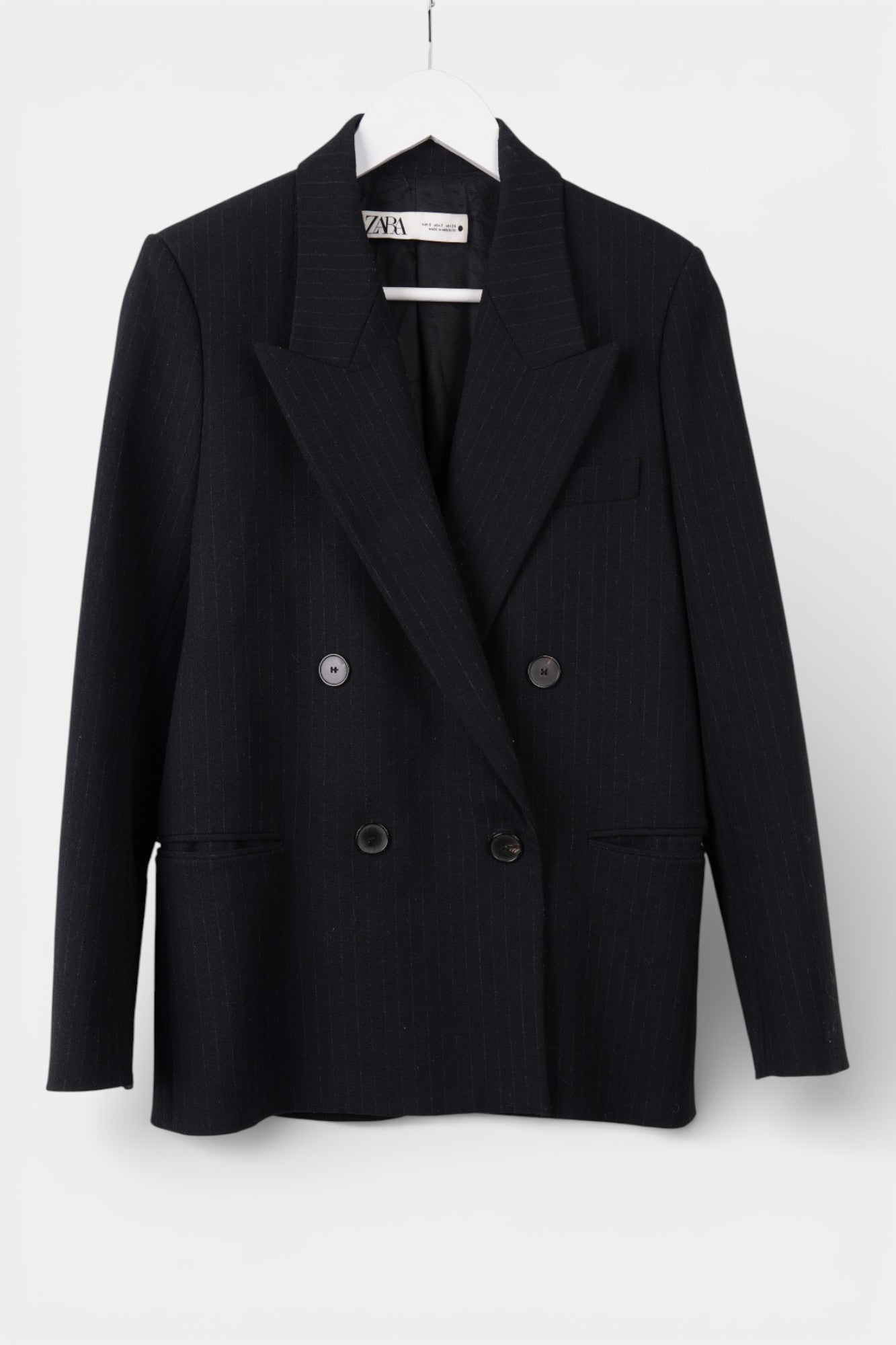 Womens Zara Black Wool Pin Stripe Blazer Size S