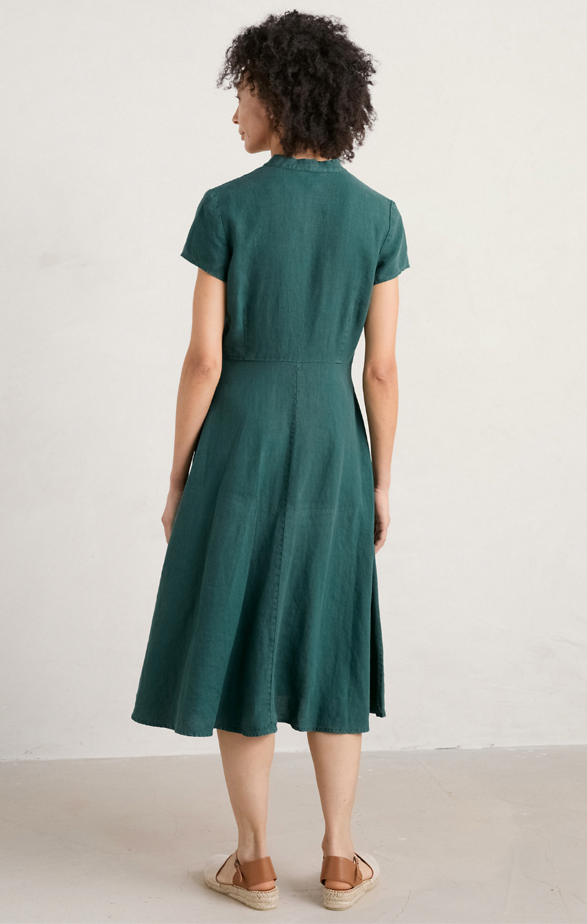 Womens SeaSalt Cornwall Green Linen V neck midi shirt dress size 20
