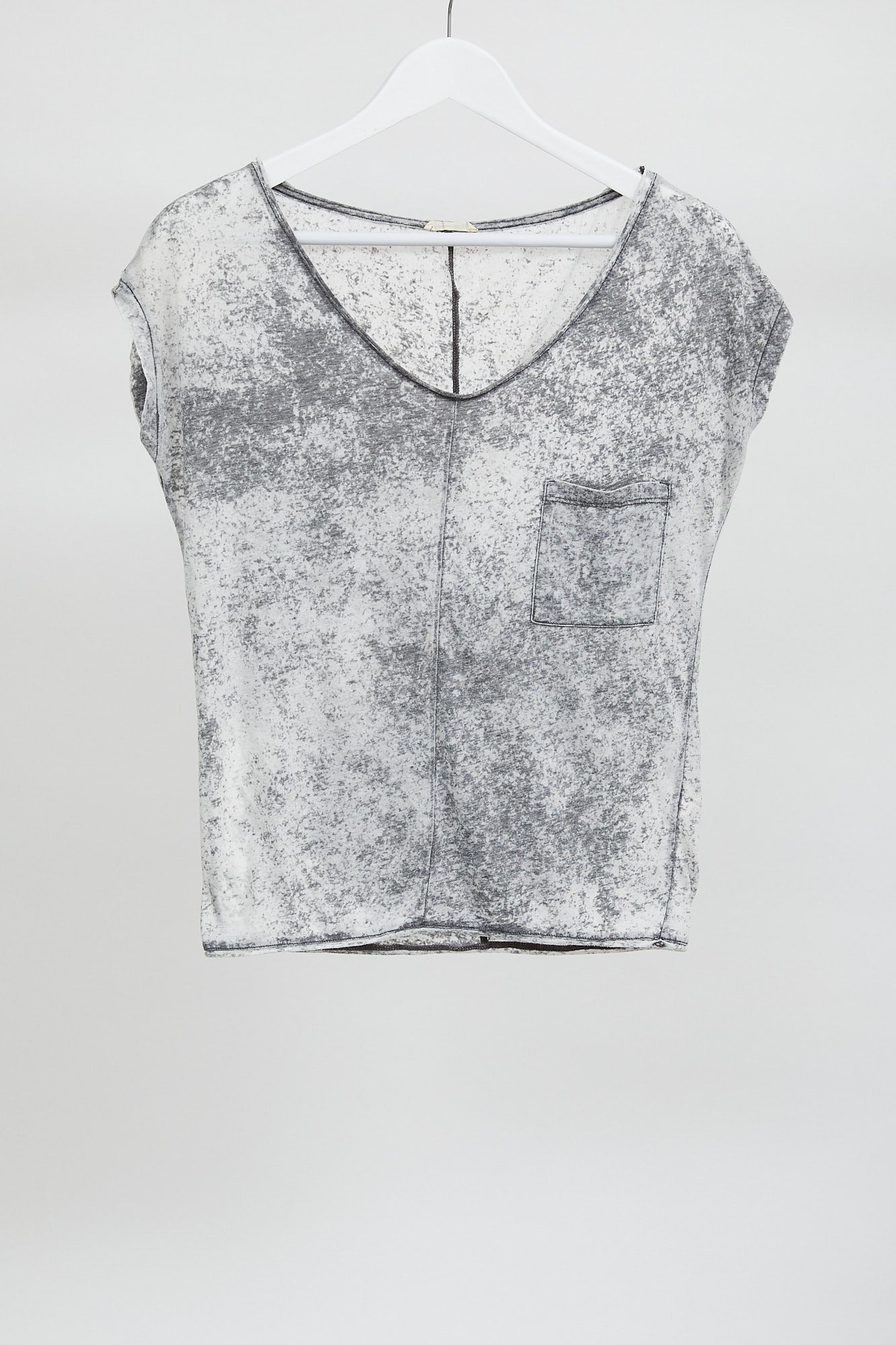 Womens Grey Short-Sleeve T-Shirt, fine fabric, slightly sheer: Size 8-10 or Small