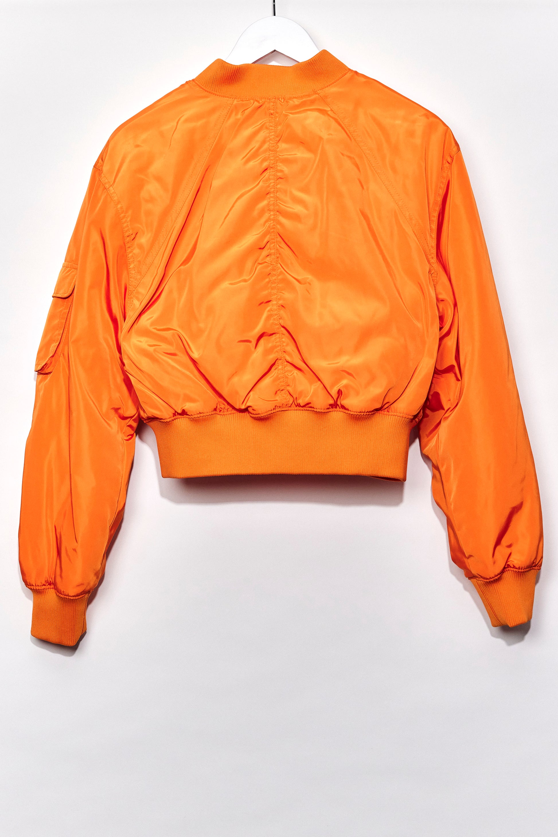 Womens H&M Orange oversized bomber jacket with gathered sleeve detail and zip front fastening size small to fit 8-10 or bust 82-90cm, waist 66-74cm