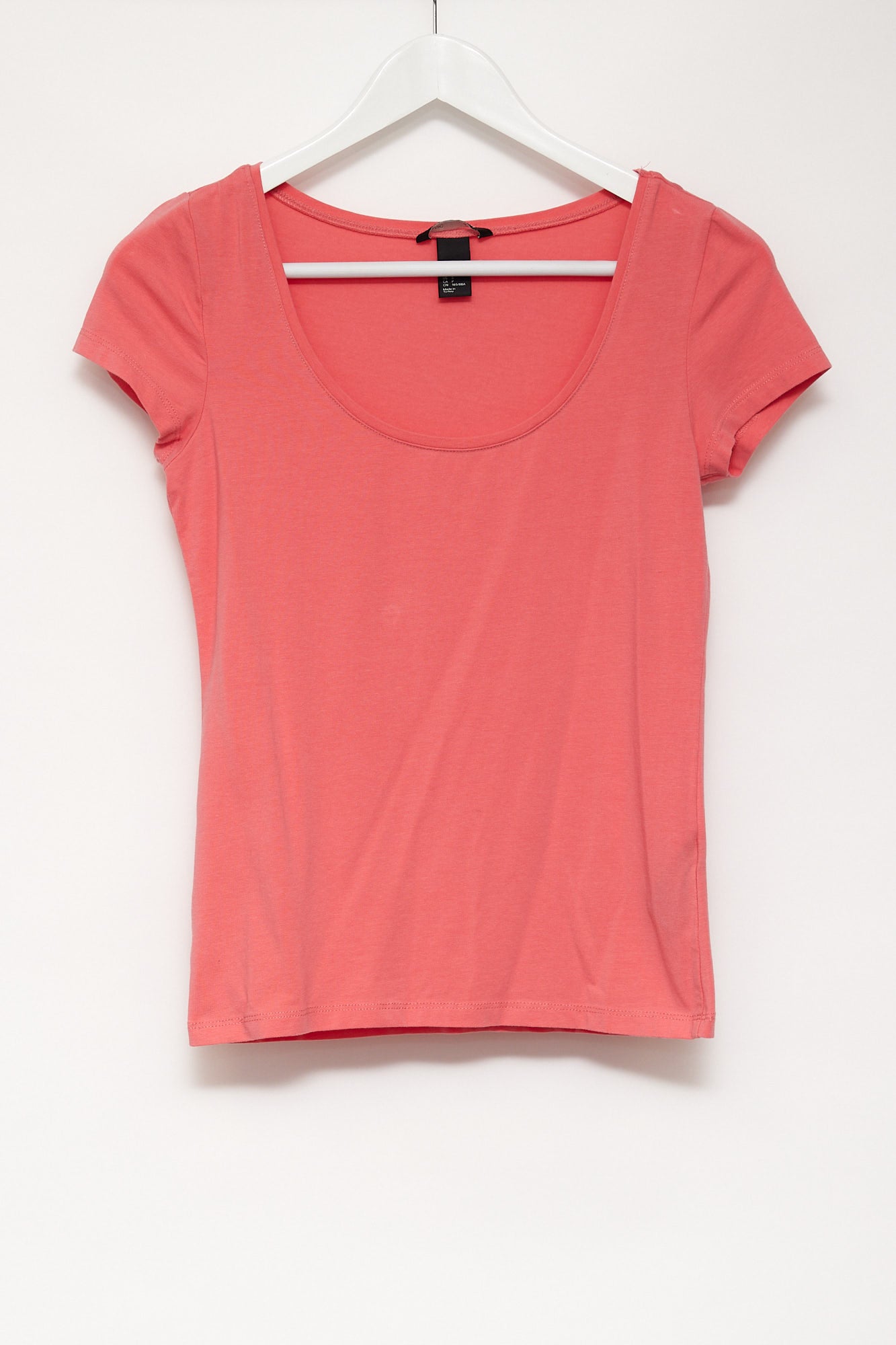 Womens H&M Pink fitted scoop neck T-shirt size small or 8 to fit 33-34" chest