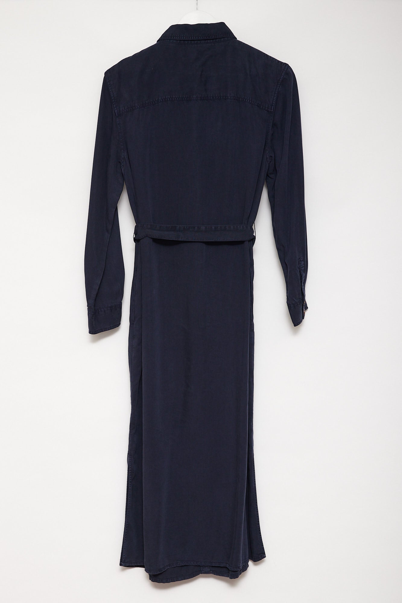 Womens M&S Navy shirt dress with a tie waist and brown buttons - size small or 10 to fit 34" chest