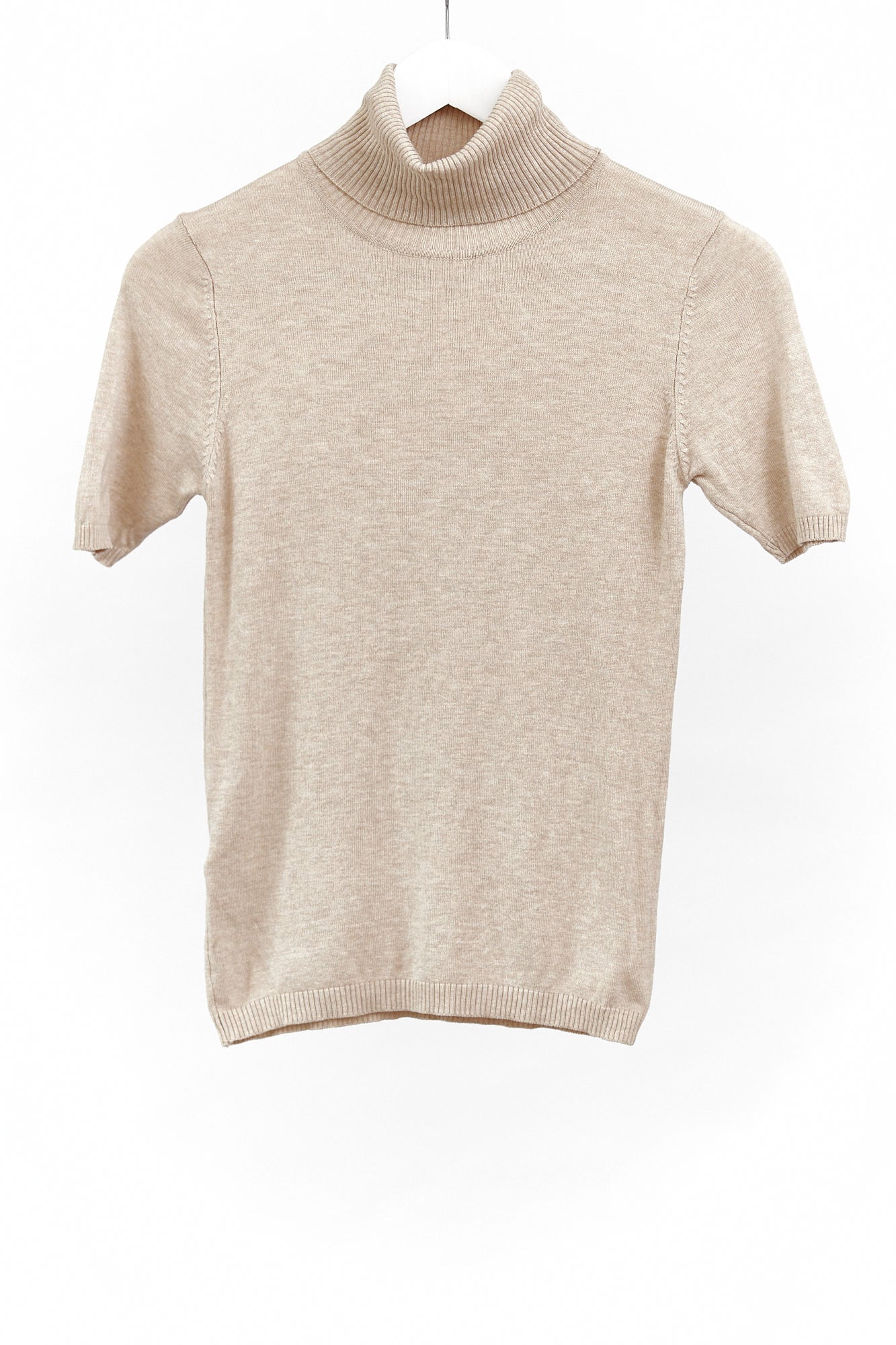 Womens Mango beige knitted short sleeve roll neck sweater size extra small