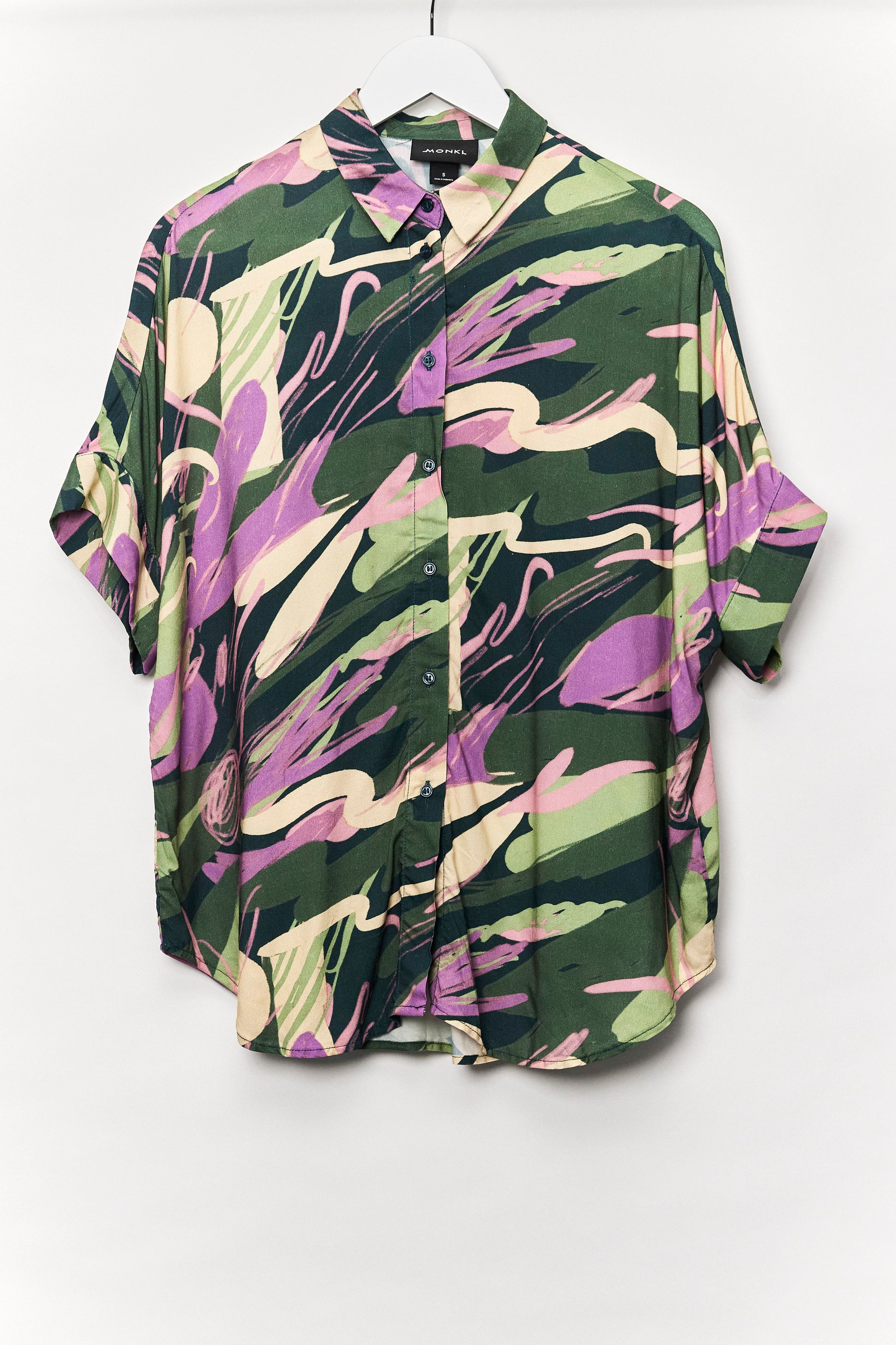 Womens Monki Patterned short sleeve shirt size Small to fit 8-10 loose fit