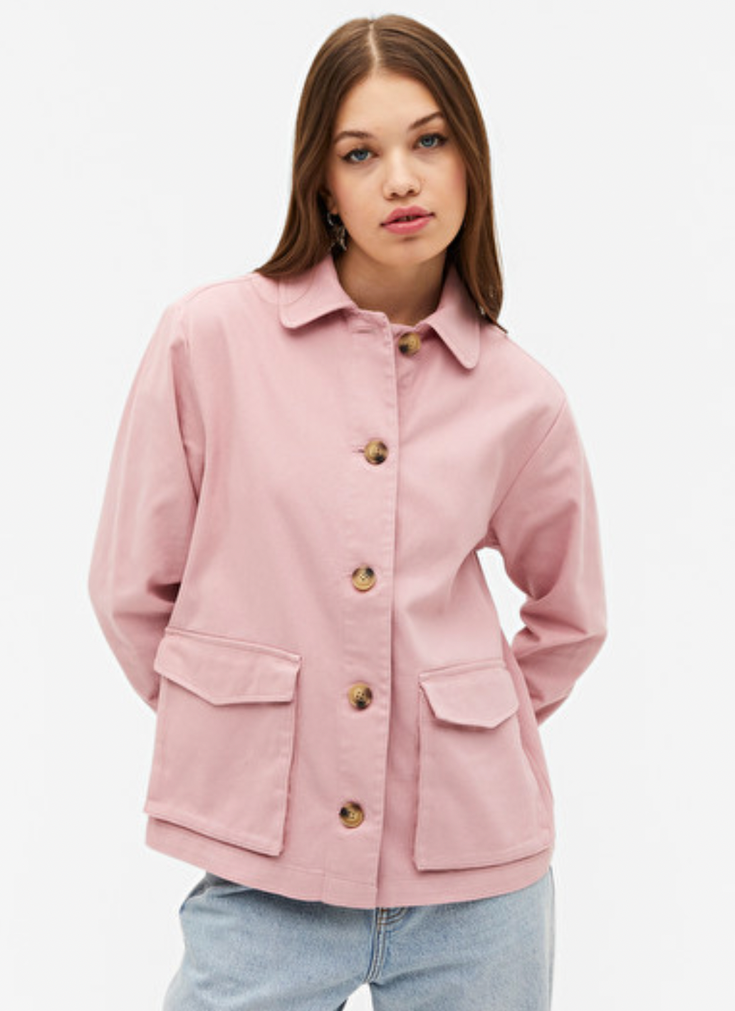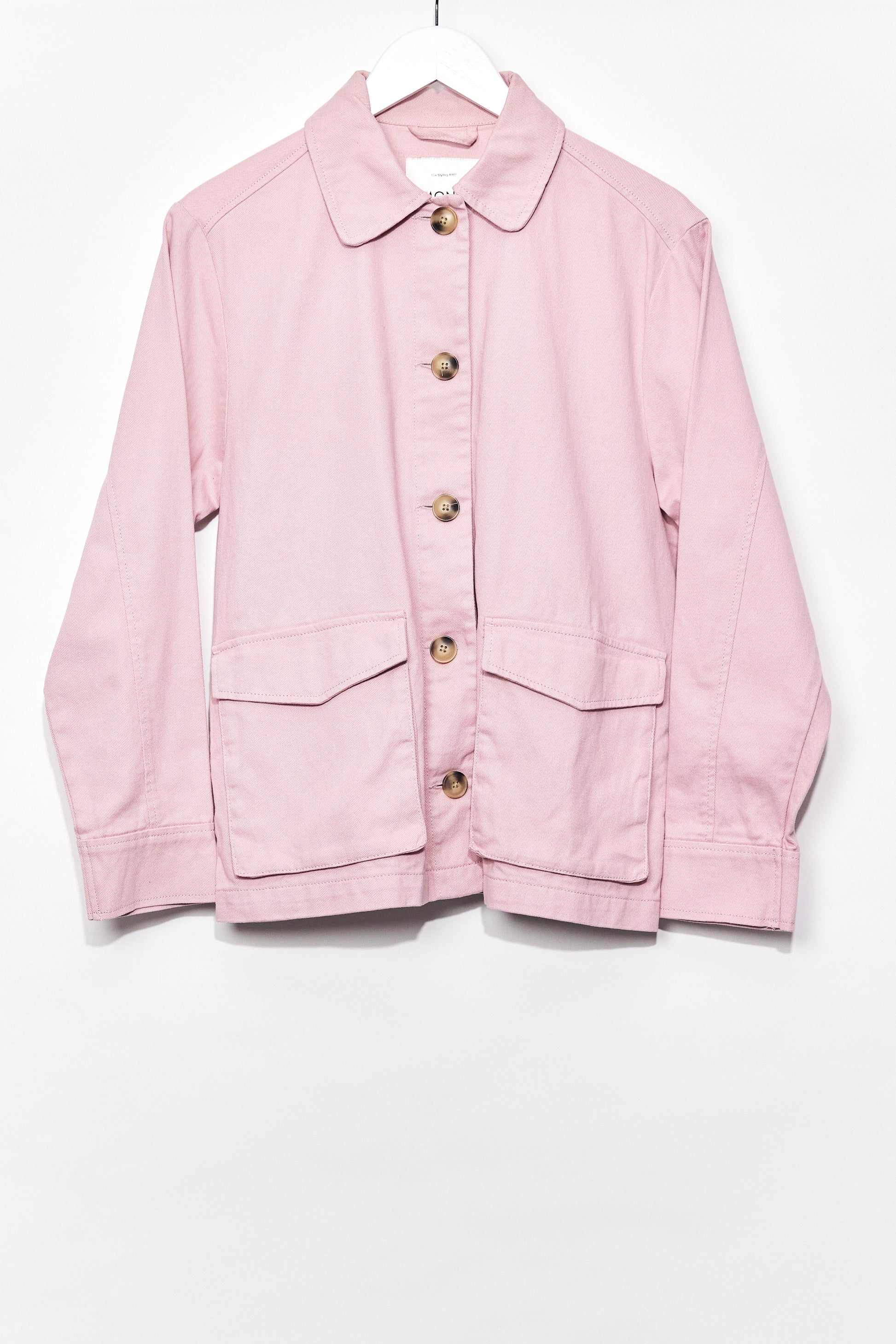 Womens Monki Pink twill Utility Jacket with button up front and patch pockets size small to fit 84-88cm chest, 68-72cm waist