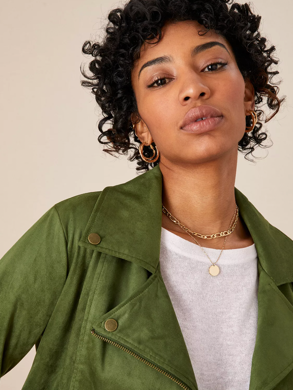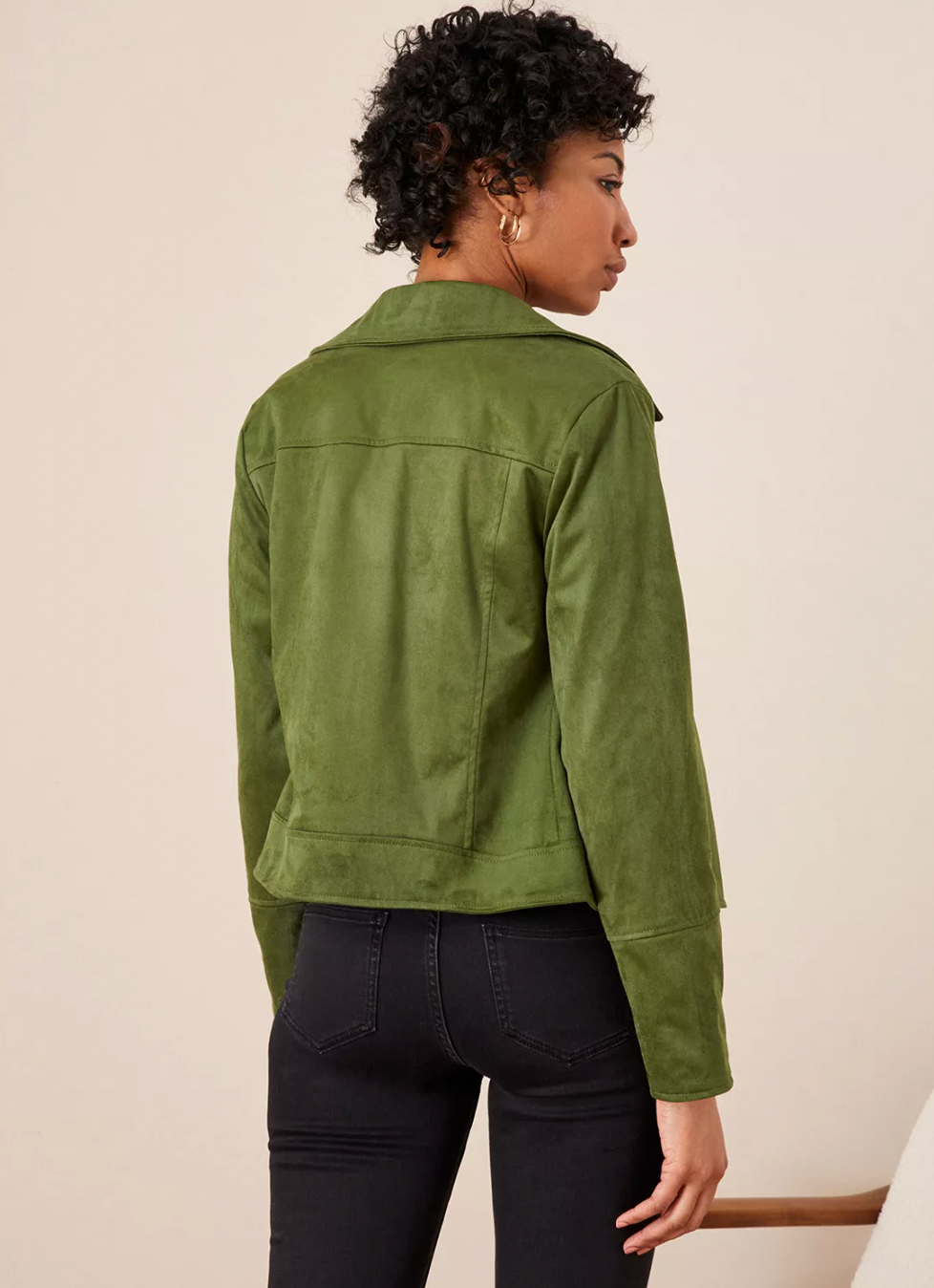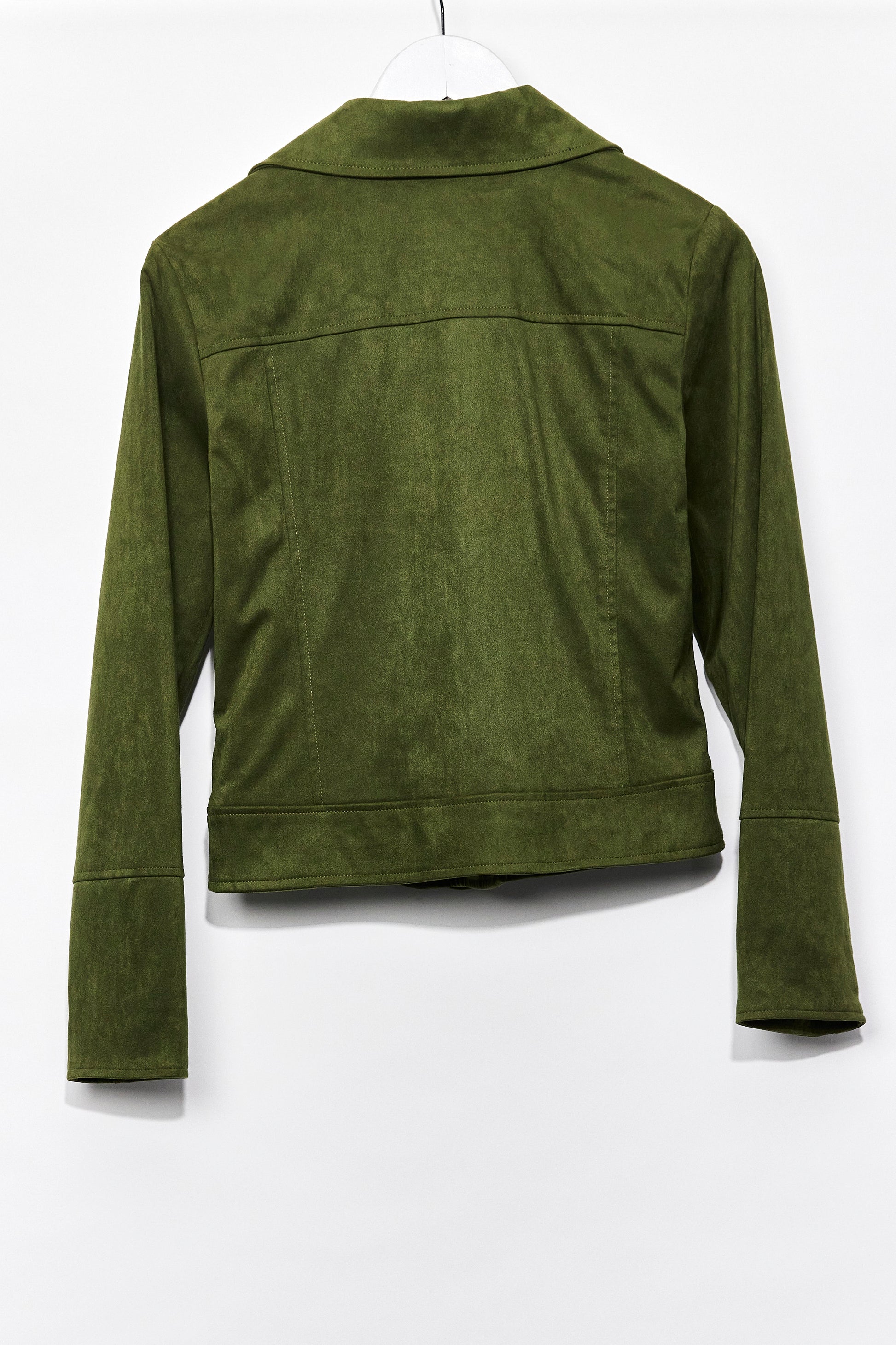 Womens Monsoon Stacey Khaki Suedette slightly cropped Biker Jacket with zip front fastening size 10 to fit 87cm bust 68cm waist