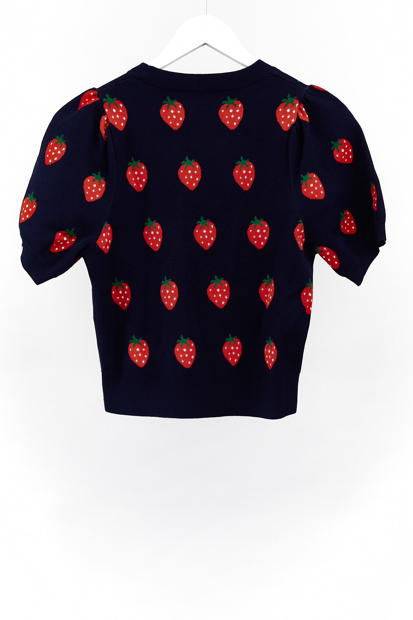 Womens & Other Stories strawberry knit navy and red cropped short sleeve sweater size extra small to fit 31-32" chest