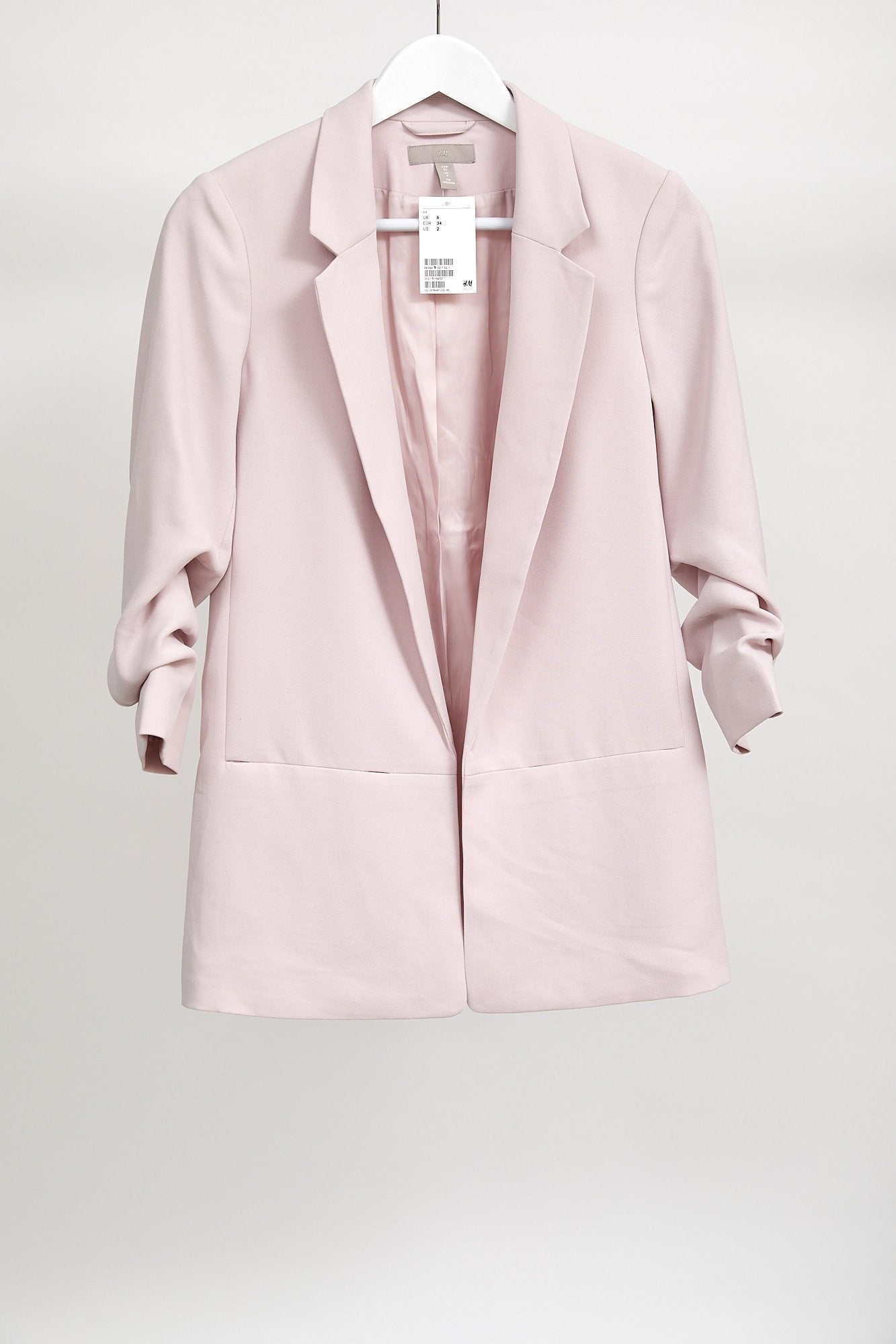 Womens Pink H&M Blazer with gathered bracelet sleeve: Size 6-8 Extra Small to fit 32" Chest