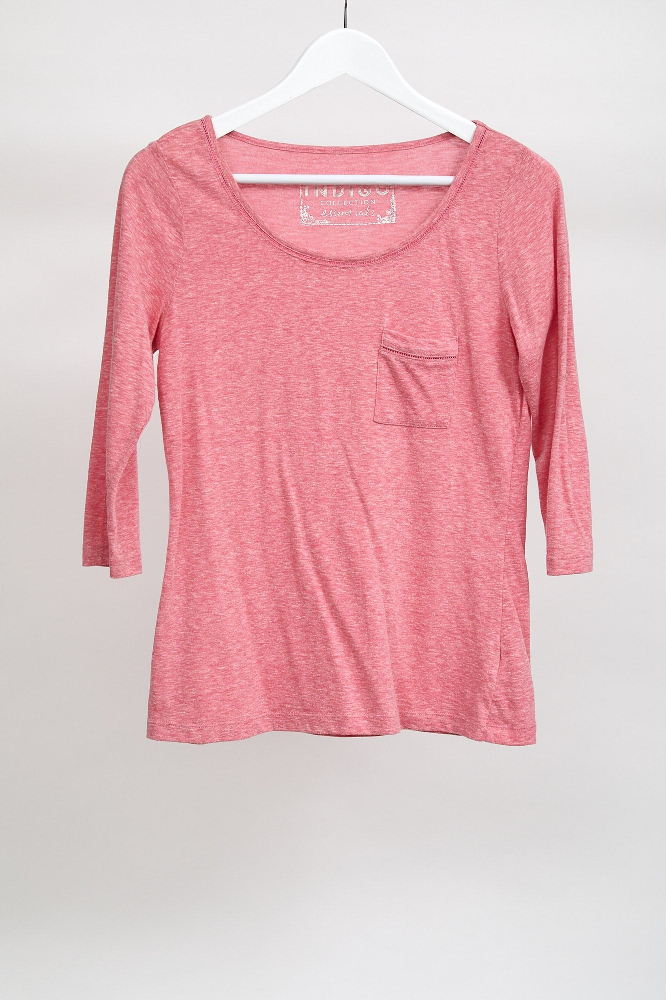 Womens M&S Pink 3/4 Sleeve Top with front pocket: Size 12-14 or Medium