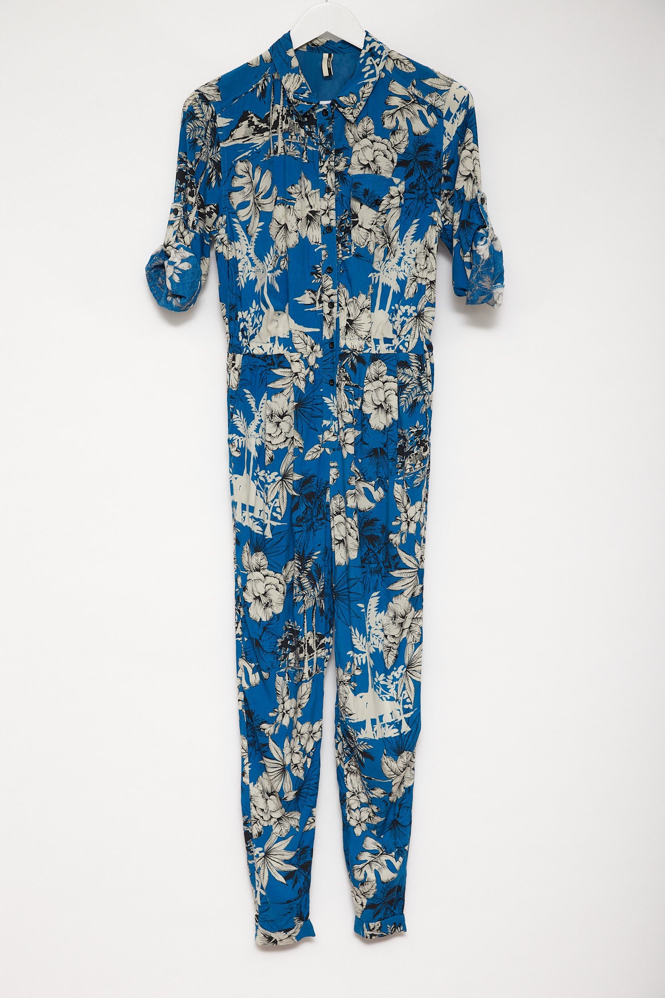 Womens Topshop blue tropical print jumpsuit size 8 or small to fit 33-34" chest 27" waist