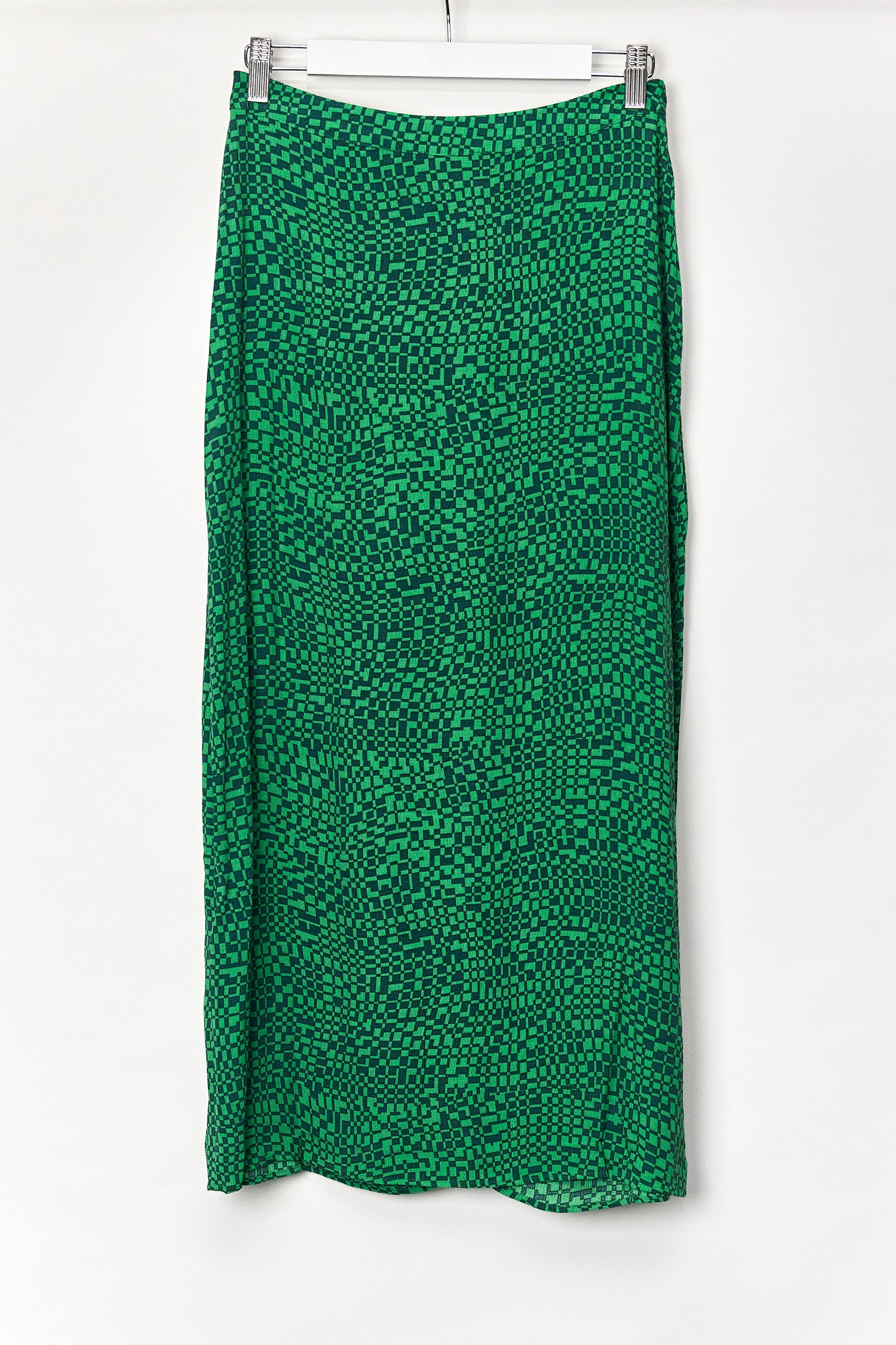 Womens Whistles button front green abstract checkerboard pattern midi skirt size 8