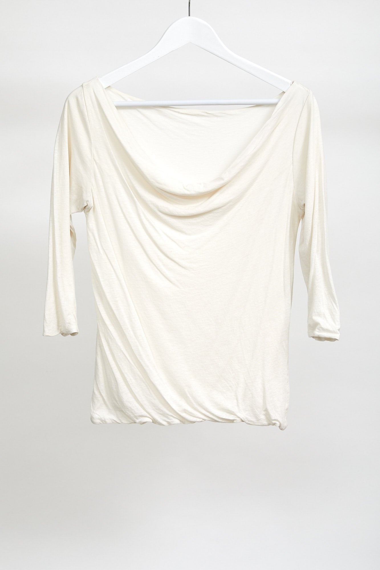 Womens Cream drape neck 3/4 Sleeve T-Shirt: Size 10 or Small