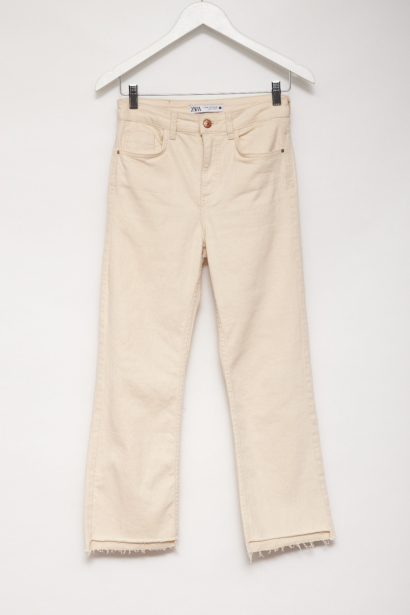 Womens Zara Cream cropped jeans with frayed hem size extra small to fit 6-8 or 26" waist